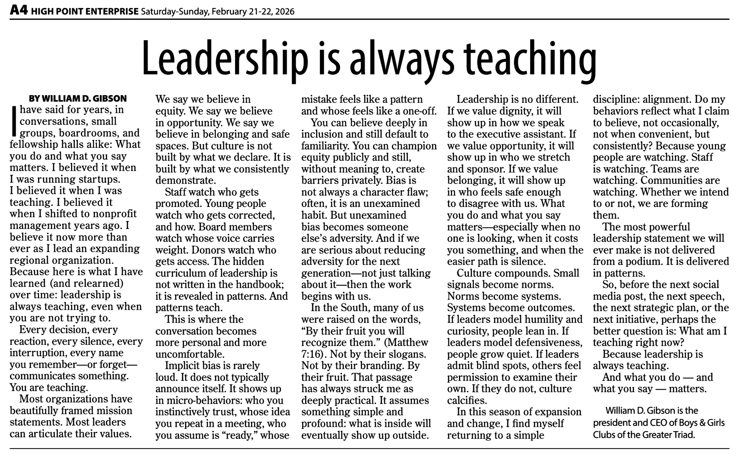 Note: This article was published in the High Point Enterprise, February 21, 2026